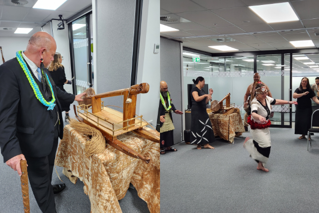 We are deeply grateful to the mana whenua of Te Kei o te Waka o Tainui for formally opening our new tari, the Pasifika matua who offered blessings, karakia and a beautifully carved Waka Hourua taonga, representatives from Pacific General Assembly, Te Tahawai and Ruapōtaka Marae, and to all our kaimahi who participated in this special, wairua-filled event.